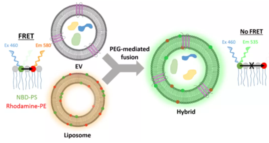 图5.脂质体与外泌体在PEG的介导下完成融合,形成新的杂合囊泡[7]